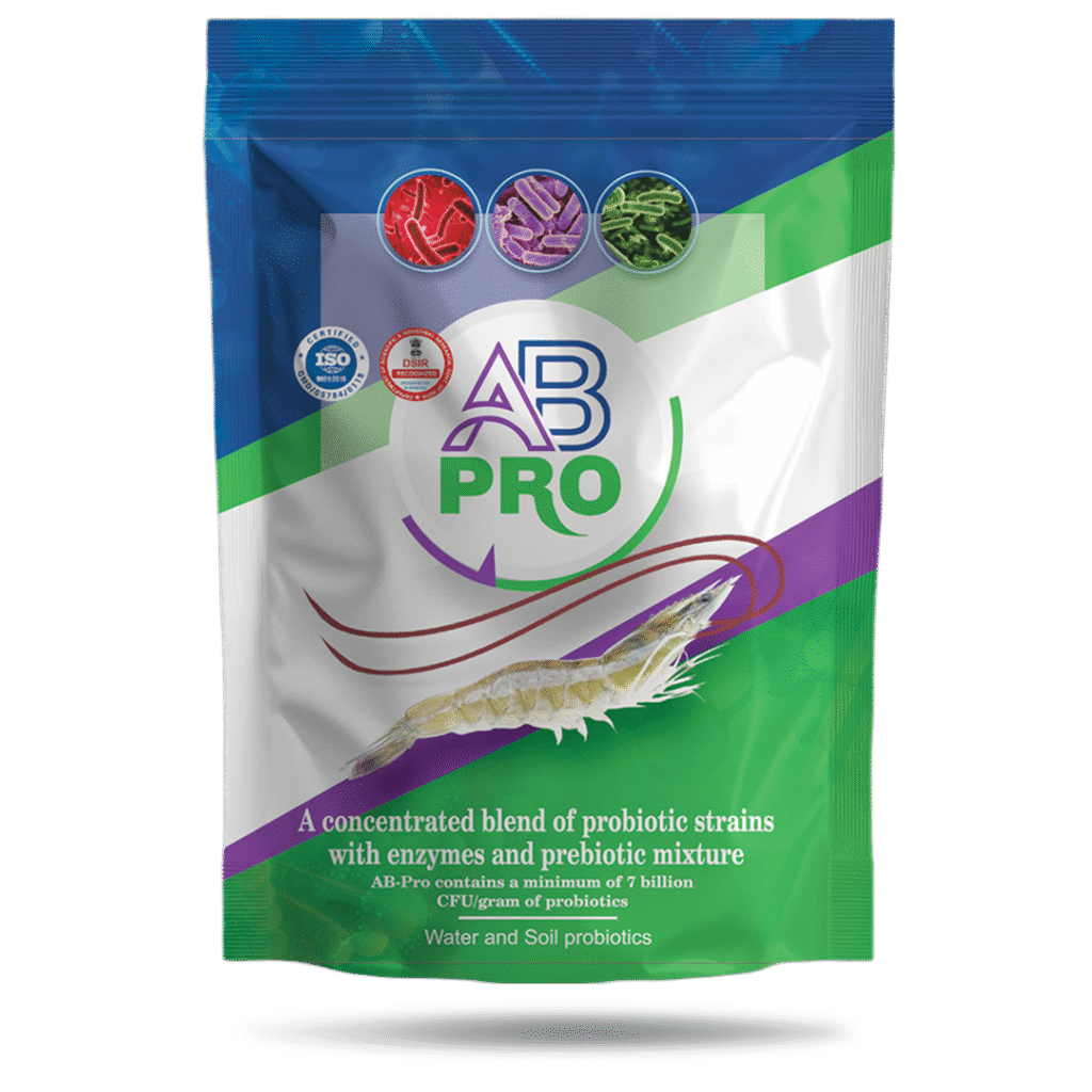 AB-Pro contains a minimum of 25 billion CFU/gram of probiotics which consists of Bacillus licheniformis, B. pumilus, B. subtilis, B. cereus, B. amyloliquefaciens, Lactobacillus –acidophilus, L. plantarum with catalysing enzymes Amylase – 25000 IU, Protease – 25000 IU, Lipases – 25000 IU, Cellulase – 25000 IU, Trypsin – 20000 IU and Prebiotic mixture.
