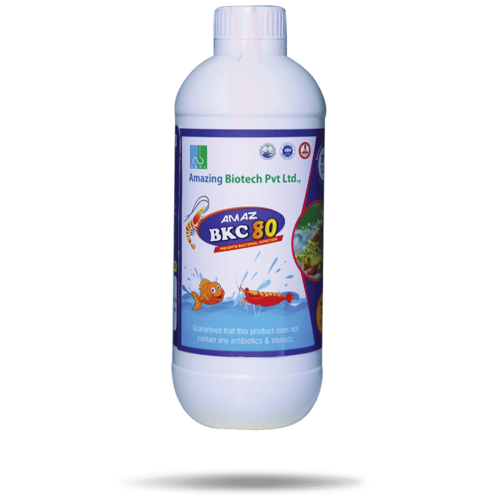 Mix the required quantity of Amaz BKC in pond water or sand and apply the solution uniformly throughout the pond water surface during morning hours. Provide adequate aeration during application