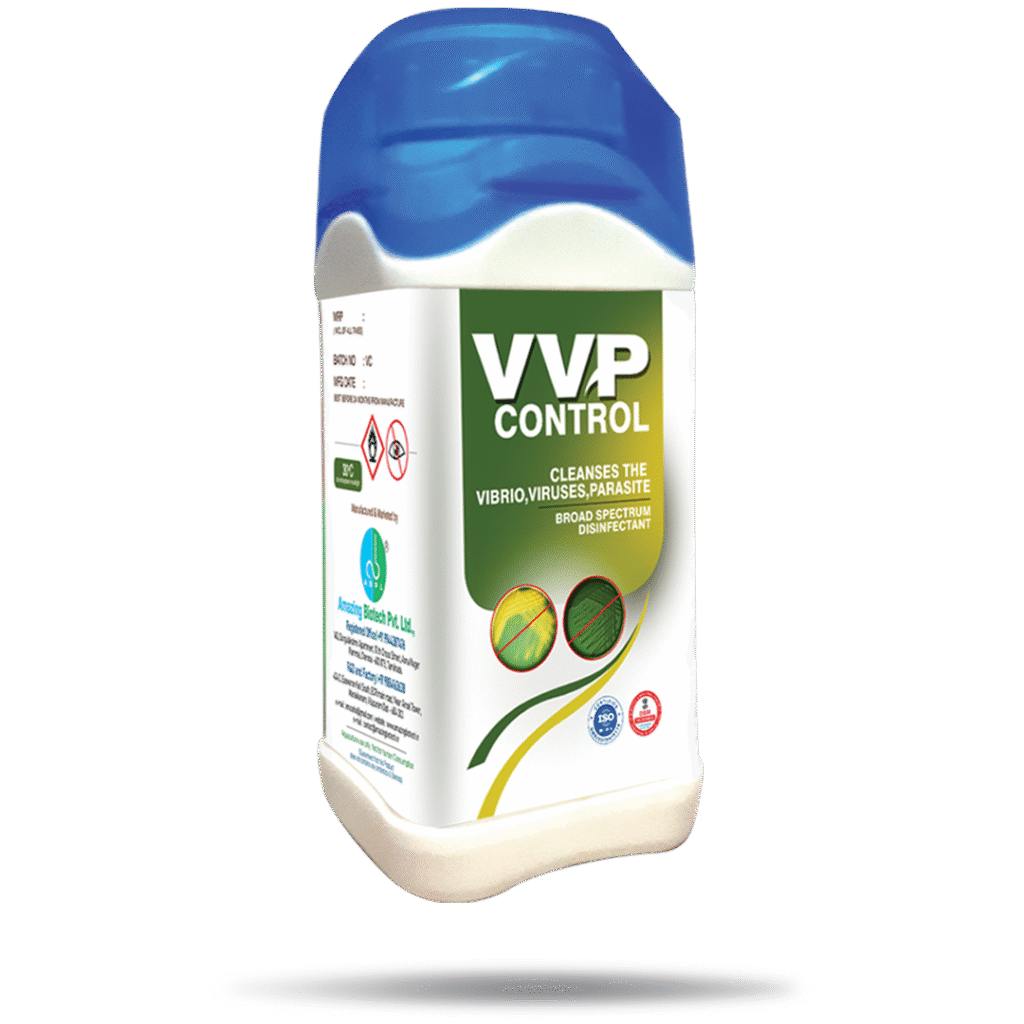 VVP control consists of disinfectants like potassium monopersulphate compound, Sodium dichloroisocynurate, buffers, surfactant, detergents and descalants. The product cleanses all pathogens like virus, vibrio, parasite and other pathogen.