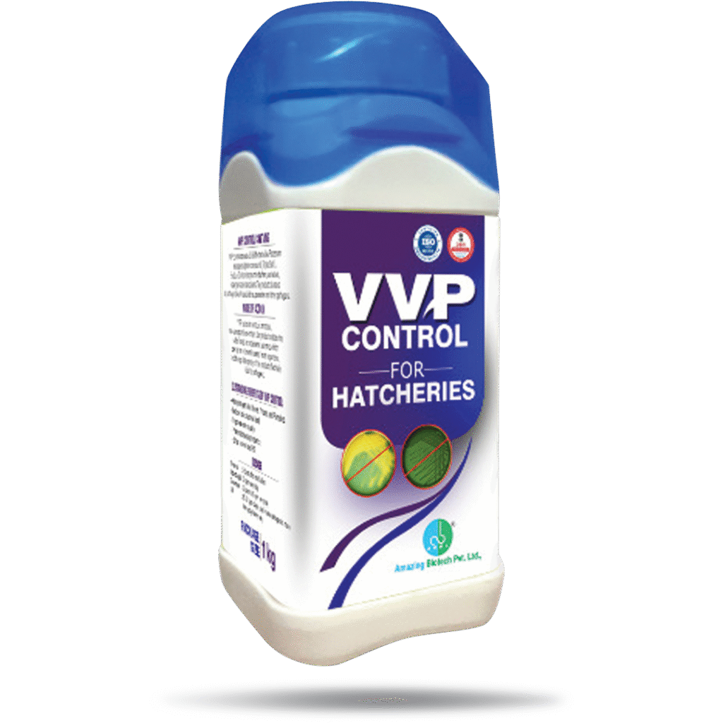 VVP control consists of disinfectants like potassium monopersulphate compound, Sodium Dichloroiscocynurate, buffers, surfactant, detergents, and descalants. The product cleanses all pathogens like viruses, vibrios, parasites and other pathogens. The product is specially designed, and for hatchery disinfection, and for the reduction of vibro proliferation