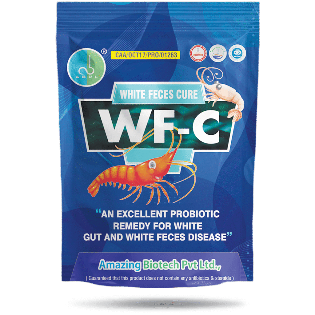 Mix 10 gm of WF-C with 1kg of feed by using feed binder. Dry the feed under shade for 30 minutes and then apply the pond.